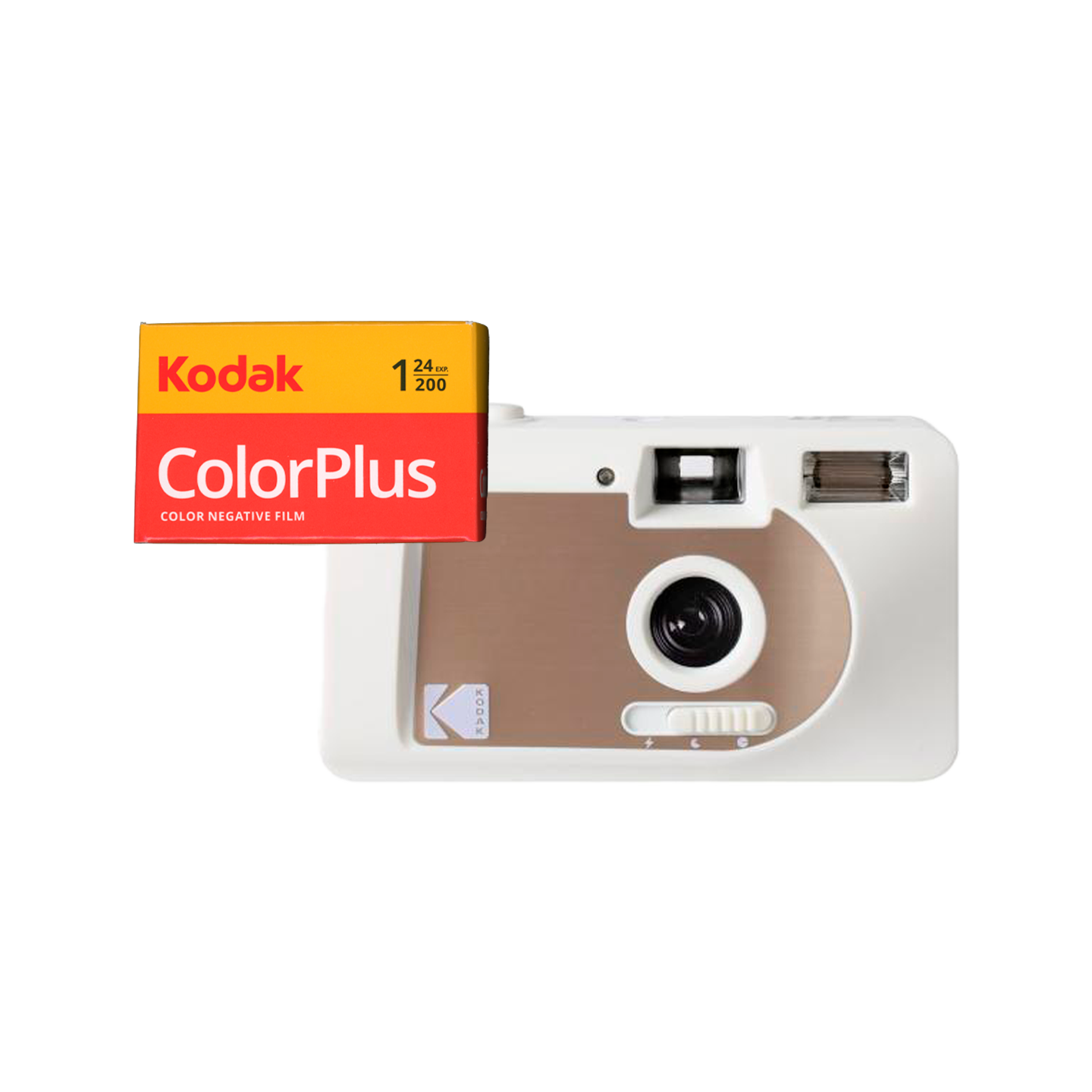 ¡Solo tienes que disparar y listo! El pack incluye, a parte de la cámara, un carrete Kodak Colorplus 200 de 24 exposiciones.
